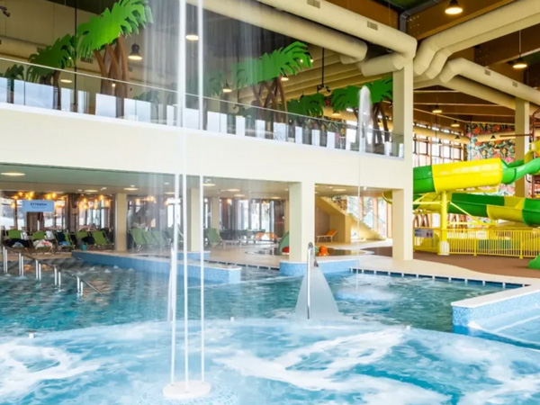 •Kinder können auf dem Bauernhof Tiere streicheln und füttern, oder sich im Wasserpark mit Rutschen und Wasserspielen vergnügen